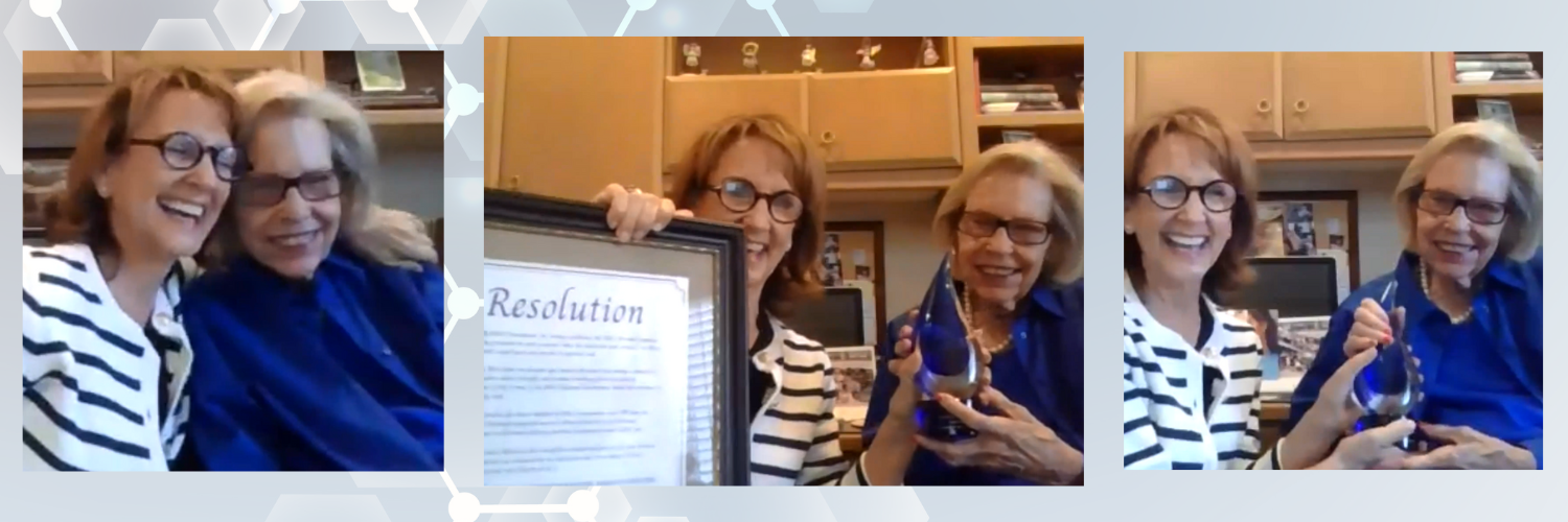 Row One: 1. Sandra with Christy Burton receiving the Luminary Award 2. Sandra and Christy with the framed Resolution and Luminary Flame 3. Sandra and Christy with the Luminary Flame