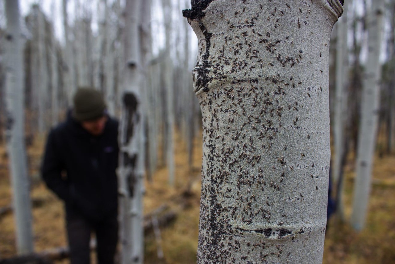 The tiny insects on the bark of this Aspen tree
