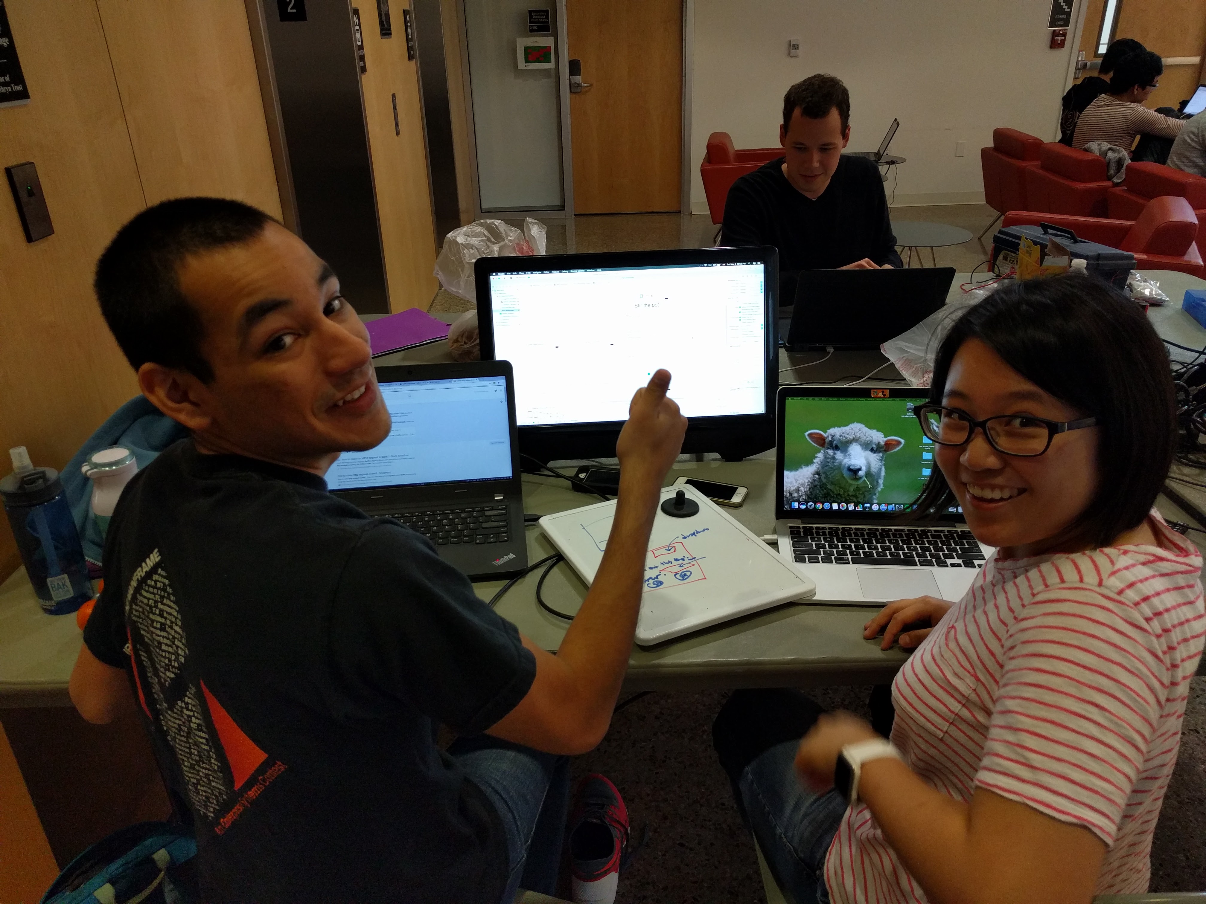 ARCS Scholar Samuel Grayson, right, and Neil Patil collaborate on creating