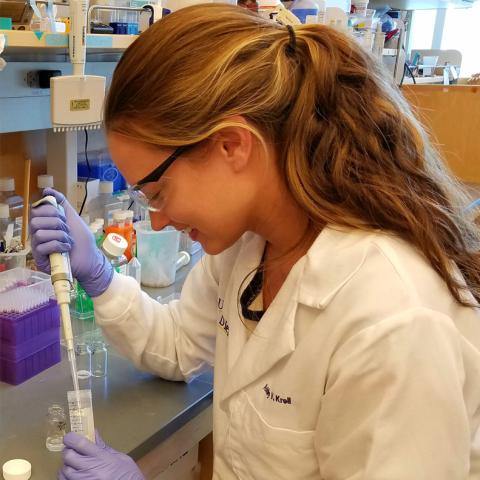 ARCS Scholar Ashley Kroll credits the world of science fiction with starting her passion for Nanoengineering. “I learned about this field when I started reading science fiction in high school, especially the works of Michael Crichton,” said Kroll. “I found out how material properties can change at a very small scale from reading these books and now I am studying the use of nanoscale materials for biomedical applications.”
